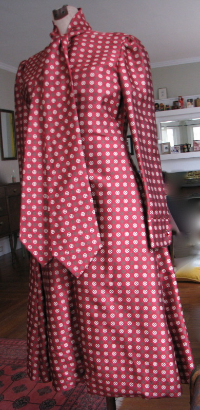 Vintage 1970s Lanvin equestrian-print, shirt dress with matching neck tie and belt, purchased on eBay for $25.