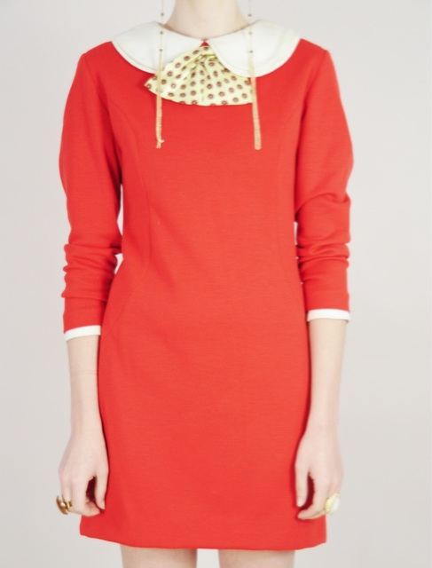 Breathtaking 1960s pearly day dress with an oversized bow neckline and bracelet length sleeves. $175 on eBay, or make an offer.