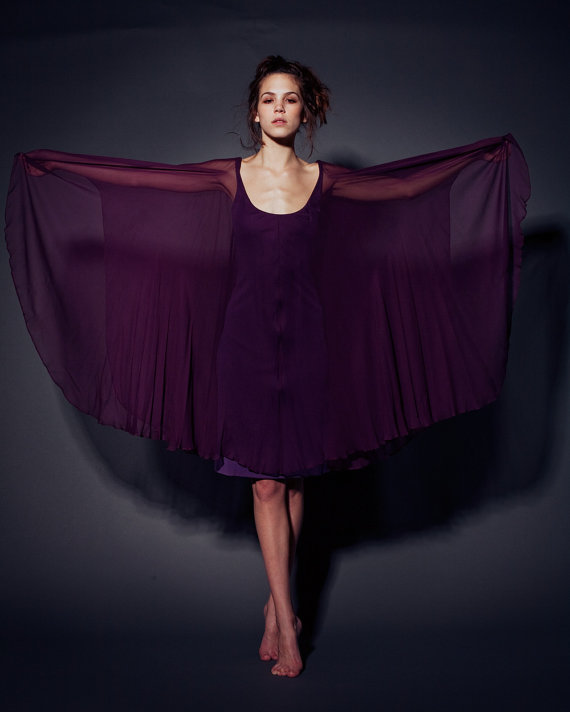 “Vintage Halston” may be my most favorite combination of words ever. In fact, if I were into role playing it would probably be my safe word. This week we found this rare 1970s Halston aubergine wool and silk caped gown from the label’s 1976 collection. Offered by jayparkinson on etsy. Click on the image below to see the listing.